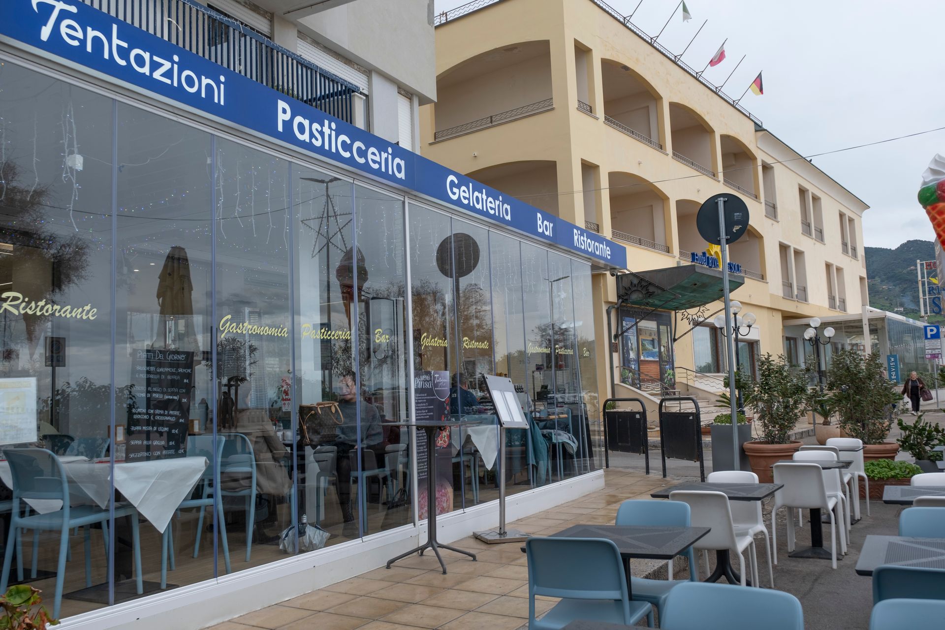 Il bar di Tentazioni di Giuseppe Serio è il punto d'incontro ideale sul lungomare di Cefalù, dove ogni sosta diventa un rito di piacere. Iniziate la giornata con l’aroma del caffè appena macinato e la fragranza dei nostri lievitati artigianali, oppure lasciatevi trasportare dai colori del tramonto con i nostri aperitivi esclusivi. Nella nostra veranda panoramica, il relax si fonde con l'eccellenza gastronomica, offrendovi un’accoglienza calorosa che profuma di mare e di autentica ospitalità siciliana, dal mattino fino a tarda sera.