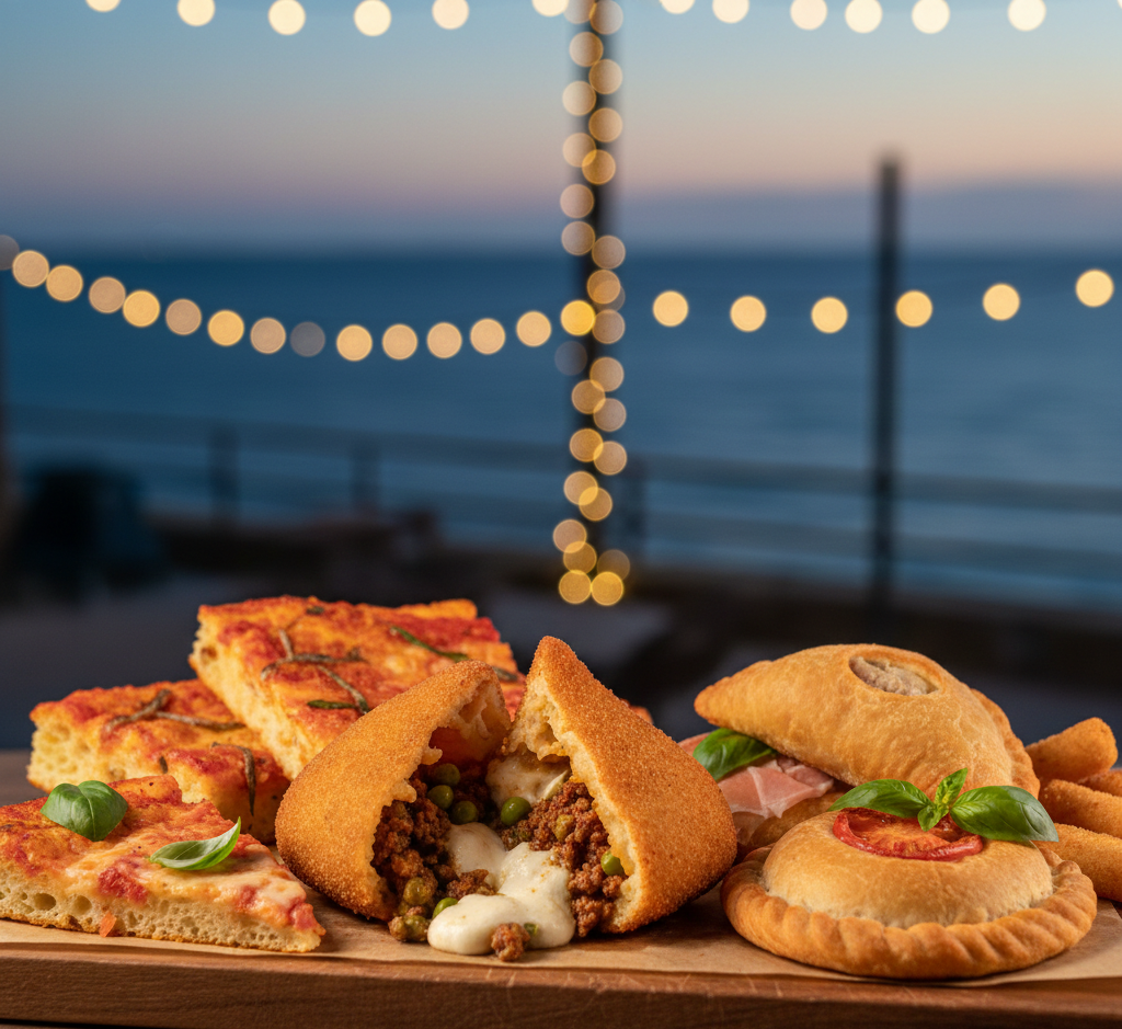 Cefalù. Nel nostro bancone troverete ogni giorno i simboli della nostra identità gastronomica: arancine dorate e croccanti con ripieni ricchi e filanti, calzoni al forno morbidi e saporiti, e le tipiche pizzette siciliane. Ogni pezzo di rosticceria è preparato con lievitazioni lente e ingredienti di prima scelta, garantendo una digeribilità perfetta e un gusto inimitabile. Questa offerta è l'ideale per un pasto veloce ma gourmet, da gustare nella nostra veranda panoramica o da portare con sé per un picnic sulla spiaggia. Grazie al nostro servizio a domicilio rapido ed efficiente, potete ricevere la fragranza della nostra rosticceria e la bontà dei nostri piatti pronti direttamente a casa vostra, portando l'eccellenza di Giuseppe Serio ovunque desideriate, con la garanzia di un prodotto sempre fresco e preparato con amore.